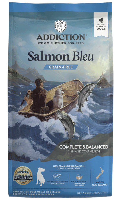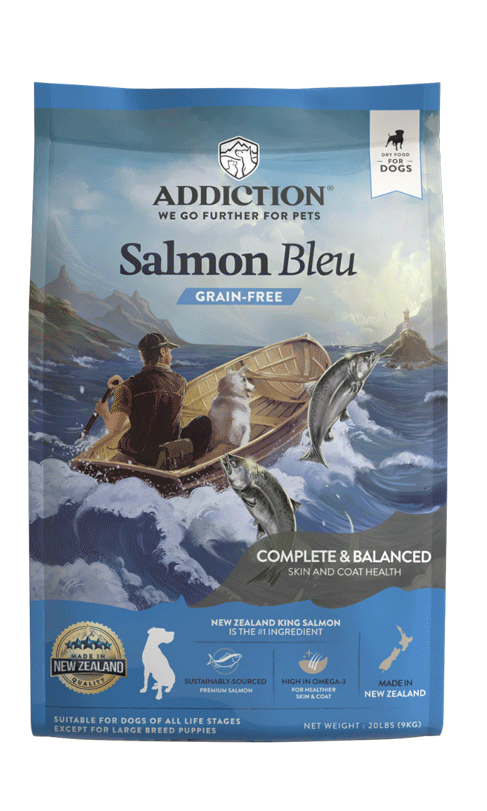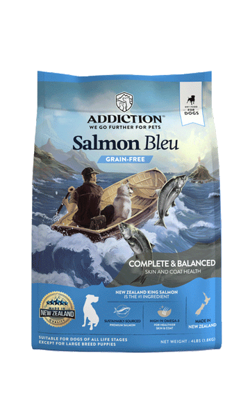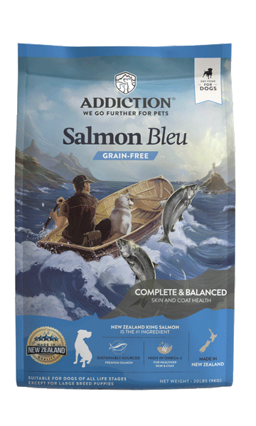 Addiction’s Salmon Bleu is formulated to meet the nutritional levels established by the AAFCO Dog Food Nutrient Profiles for all life stages.